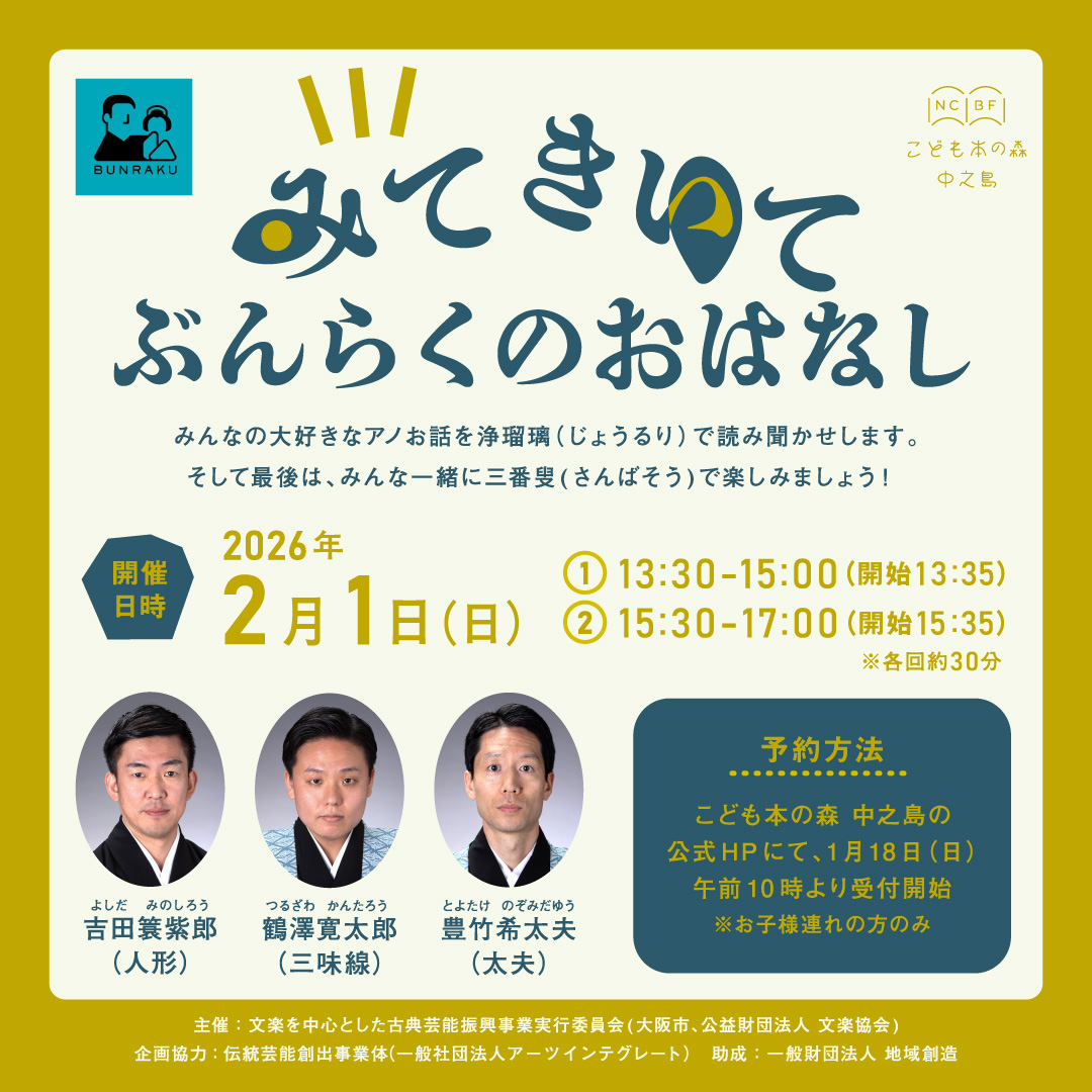 主催:文楽を中心とした古典芸能振興事業実行委員会(大阪市、公益財団法人 文楽協会)