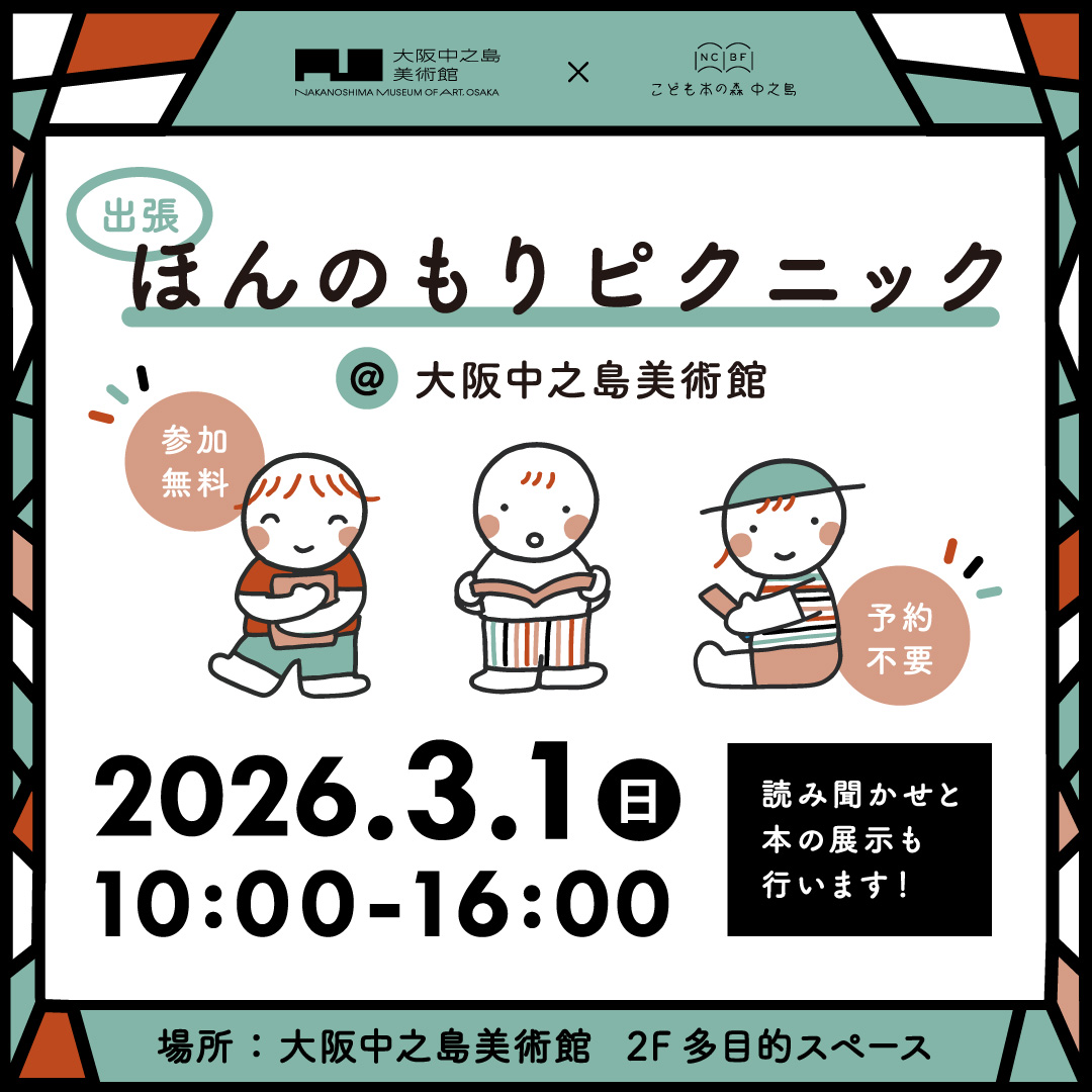 今回も大阪中之島美術館とコラボした「出張!ほんのもりピクニック」を開催します!本を自由に楽しんでいただけるピクニックスペースでは、もりびとがおはなし会を行います。そして今回は、本を通してひろくアートに親しんでもらえる機会にできればという思いから、アートや美術、美術館に関する本をお持ちします。小さなお子さまから大人の方まで手に取ってゆっくりとご覧いただければと思います。